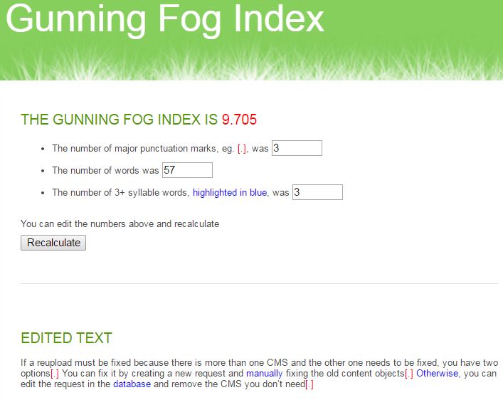 Such a simple change reduces the fog index by six years of education. You should always, Always, ALWAYS look for ways to improve the reading experience for the user.